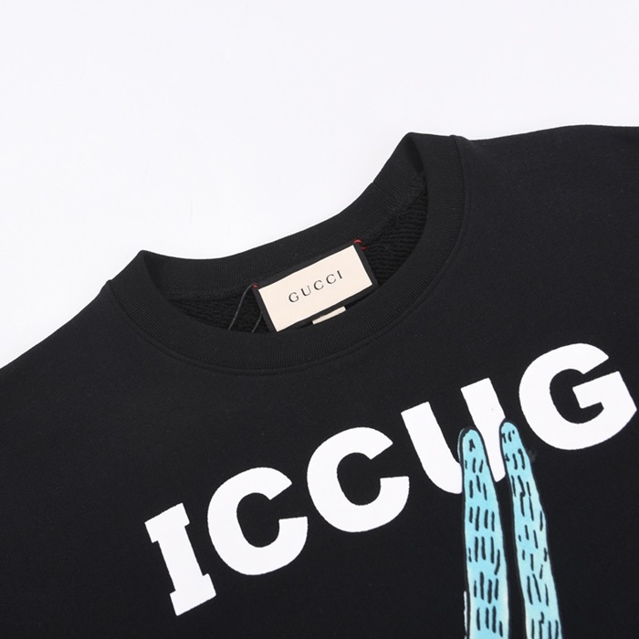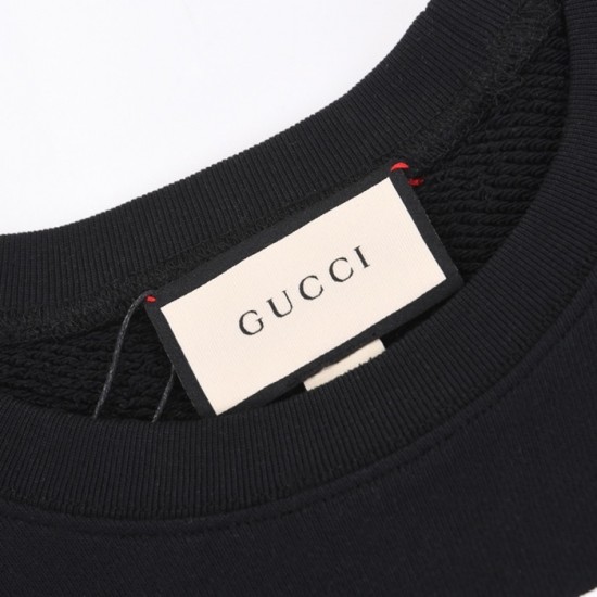 -グッチユニセックスコットンクルーネック長袖Tシャツc03868ブラック