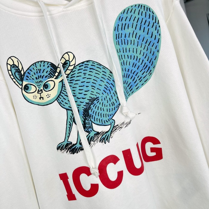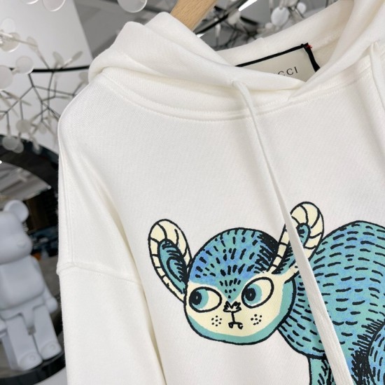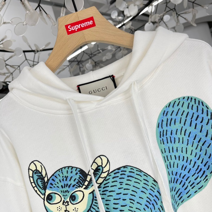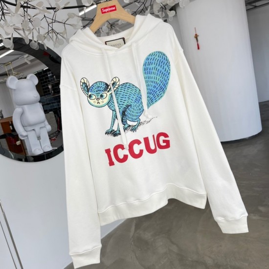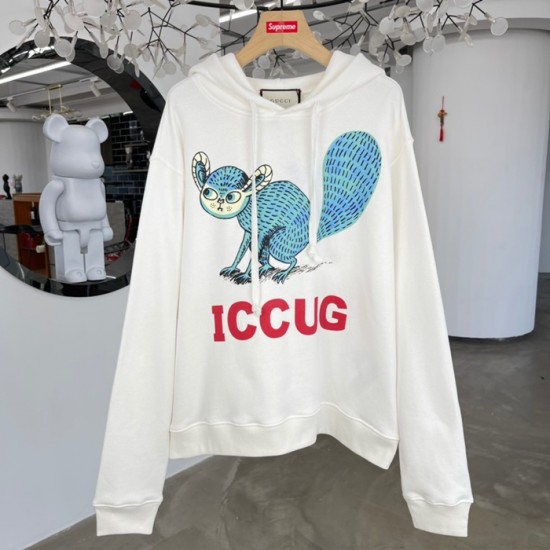 グッチユニセックスカジュアルオーバーサイズコットンフーディc03889アイボリー