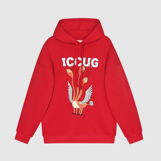 グッチユニセックスカジュアルオーバーサイズコットンフーディc03892レッド