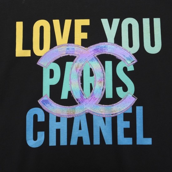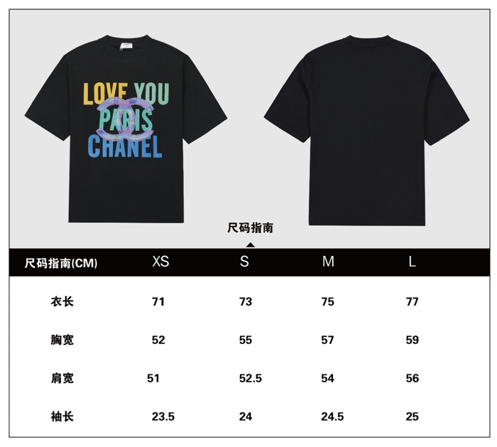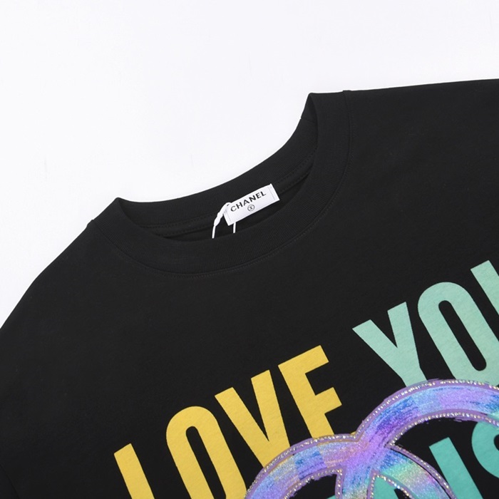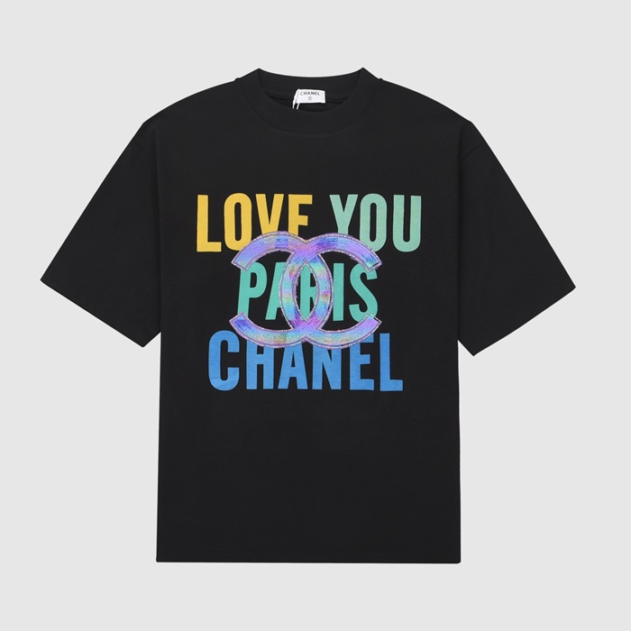'シャネルユニセックス''コットン半袖Tシャツl0727ブラック