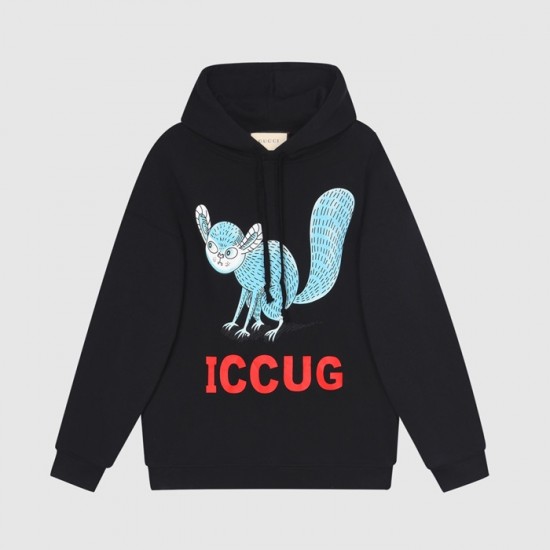 グッチユニセックスカジュアルオーバーサイズコットンフーディc03903ブラック