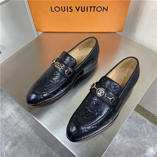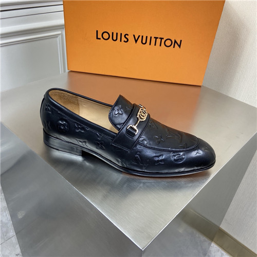 ,S2202ルイヴィトンメンズレザーローファー,ブラック