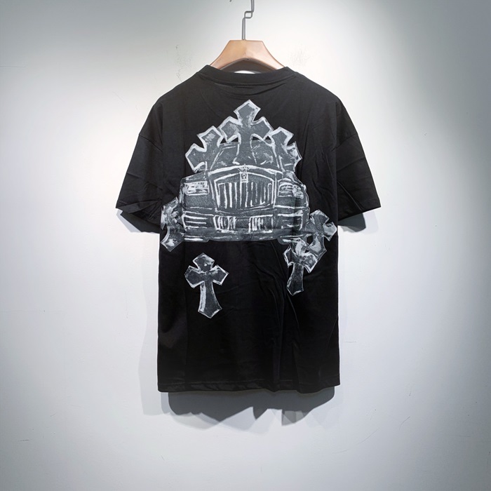 クロムハーツメンズカジュアル半袖Tシャツr0402ブラック