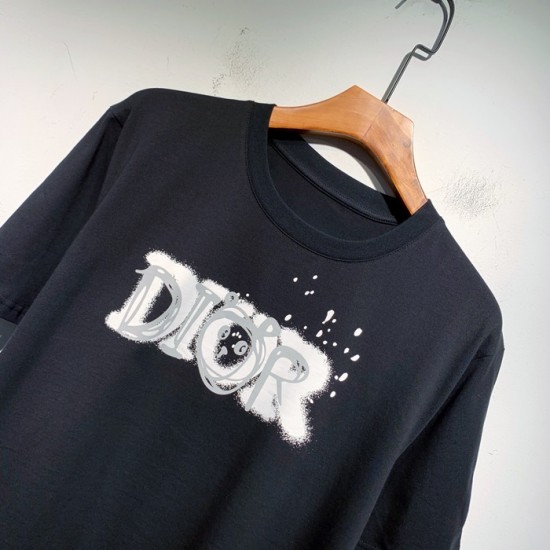 -ディオールユニセックスカジュアルクルーネック半袖Tシャツo01328ブラック