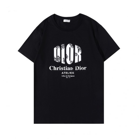 -ディオールユニセックスカジュアルクルーネック半袖Tシャツo01343ブラック