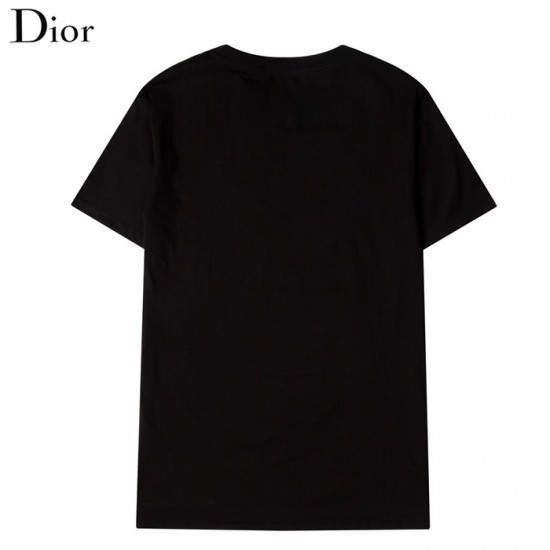 -ディオールユニセックスカジュアルクルーネック半袖Tシャツo01345ブラック