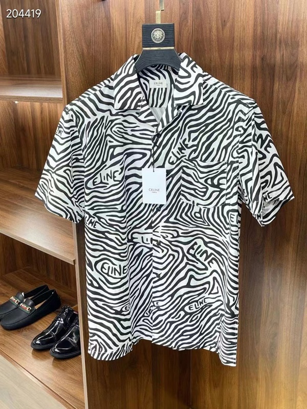 セリーヌメンズコットン半袖シャツ,l0133ブラック