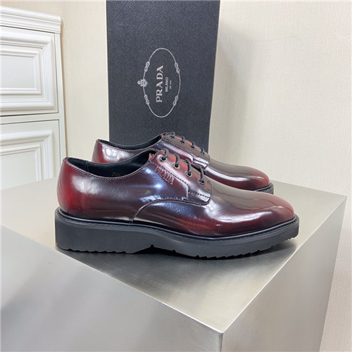 ,S0810プラダメンズレザーダービーシューズ,レッド
