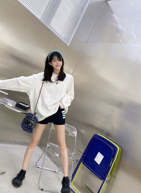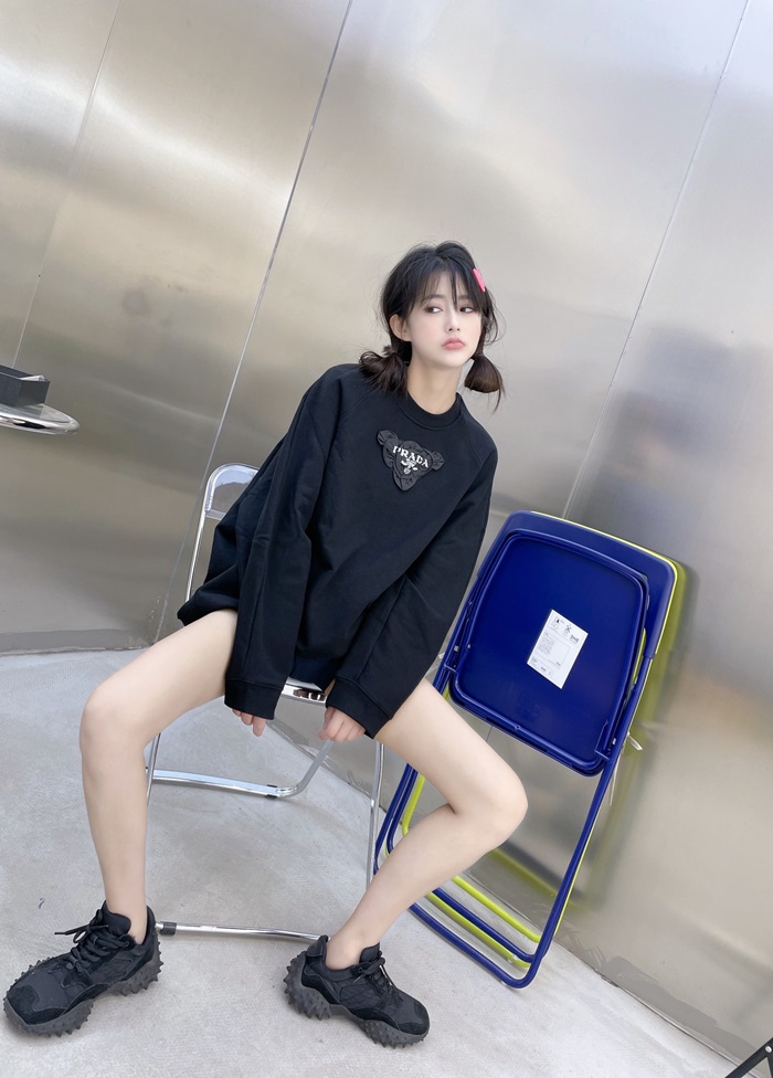 -プラダユニセックスクルーネック長袖Tシャツa02342ブラック