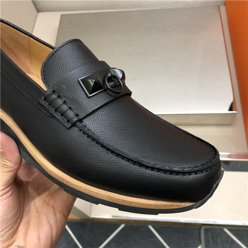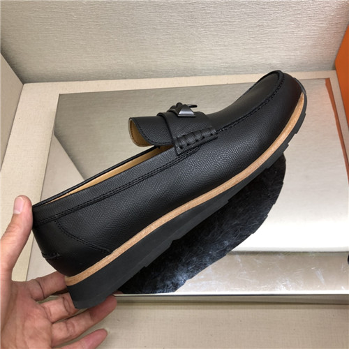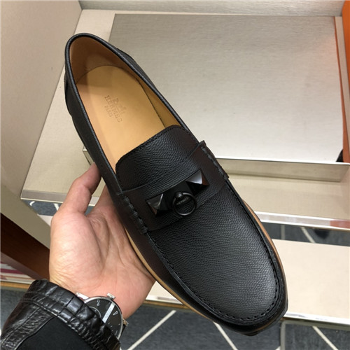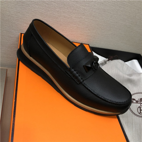 ,S0516エルメスメンズレザーローファー,ブラック