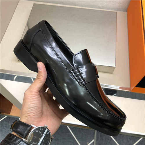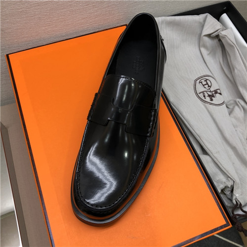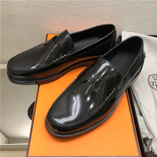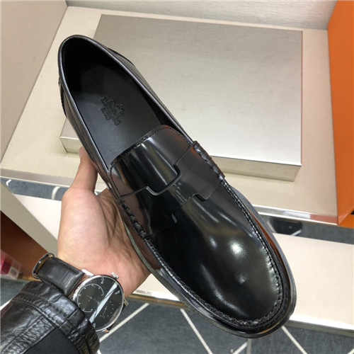 ,S0521エルメスメンズレザーローファー,ブラック