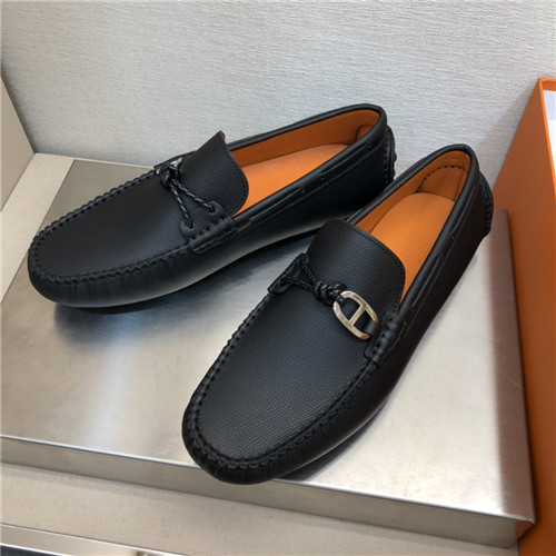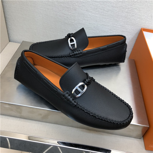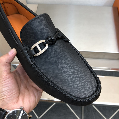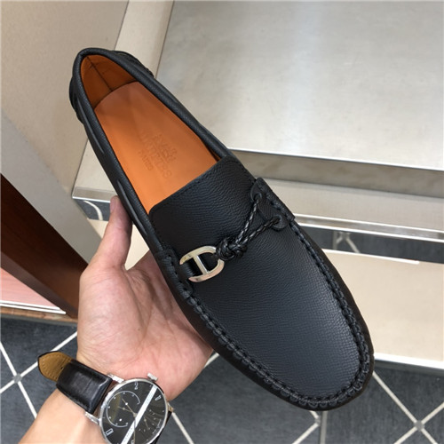 ,S0524エルメスメンズレザーローファー,ブラック