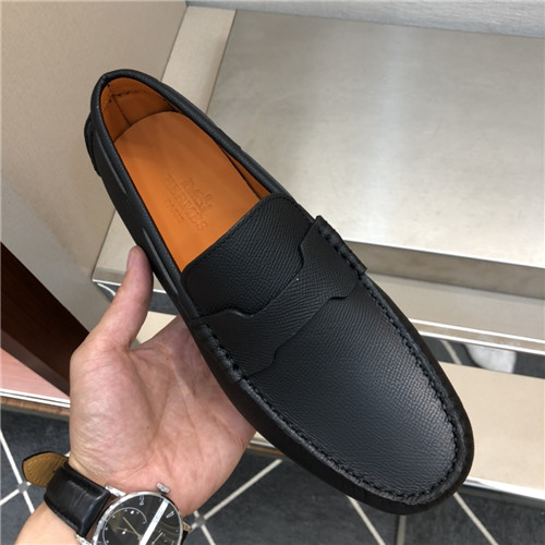 ,S0525エルメスメンズレザーローファー,ブラック