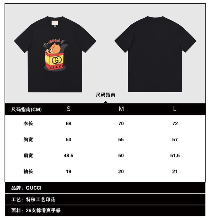 グッチユニセックス半袖Tシャツc03926ブラック