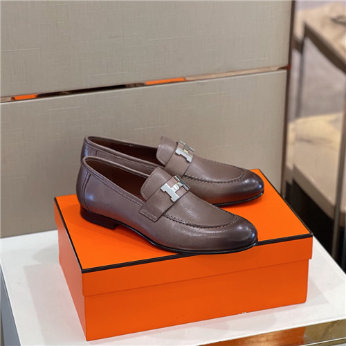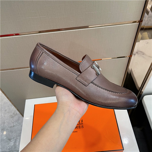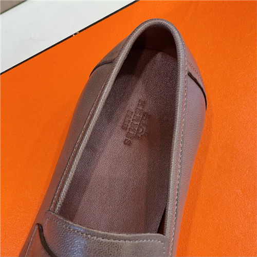 ,S0530エルメスメンズレザーローファー,ブラウン