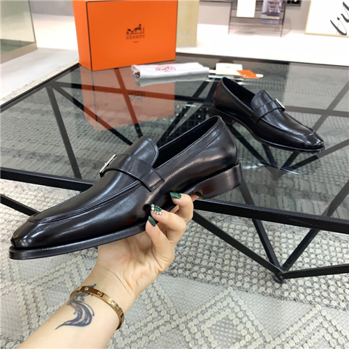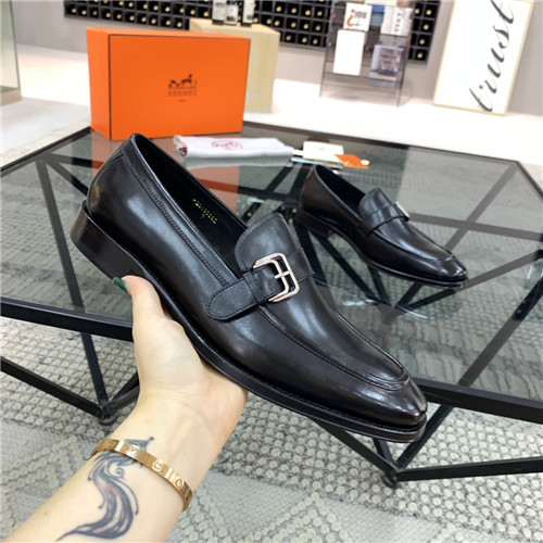 ,S0537エルメスメンズレザーオックスフォードシューズ,ブラック
