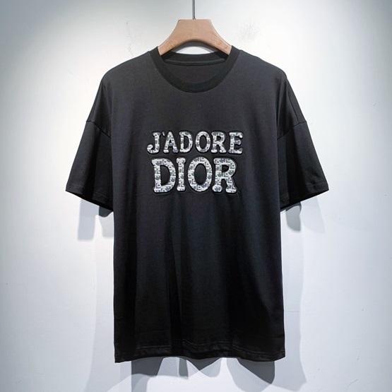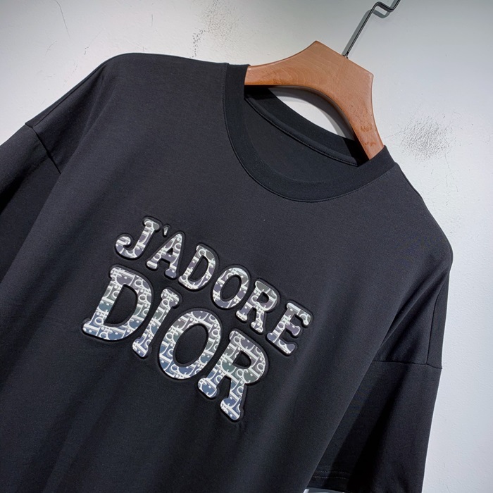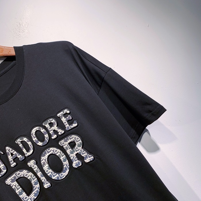 -ディオールユニセックスカジュアルクルーネック半袖Tシャツo01360ブラック