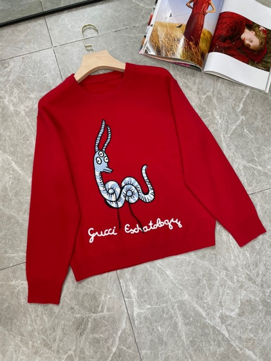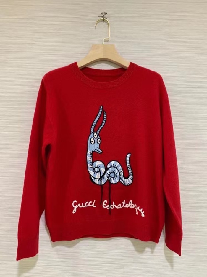 -グッチユニセックスクルーネックセーターc03962レッド