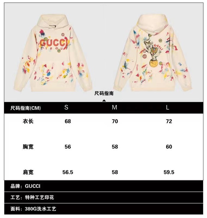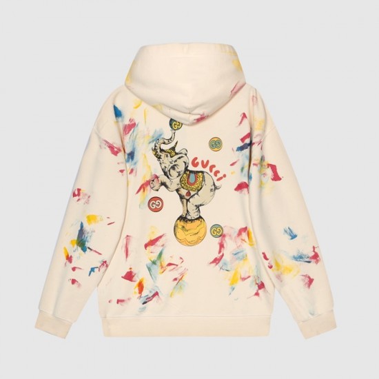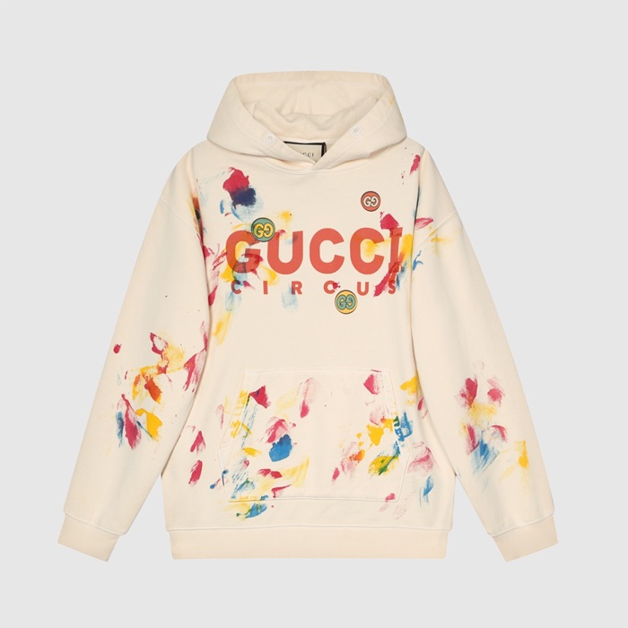 グッチユニセックスカジュアルオーバーサイズコットンフーディc03966アイボリー