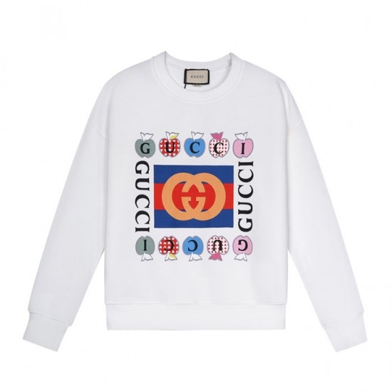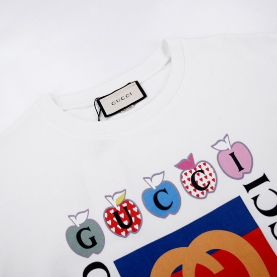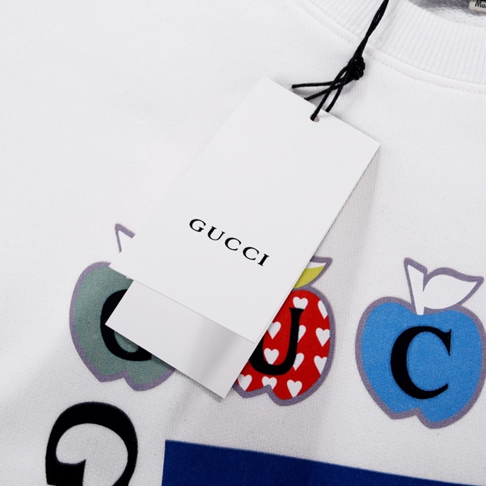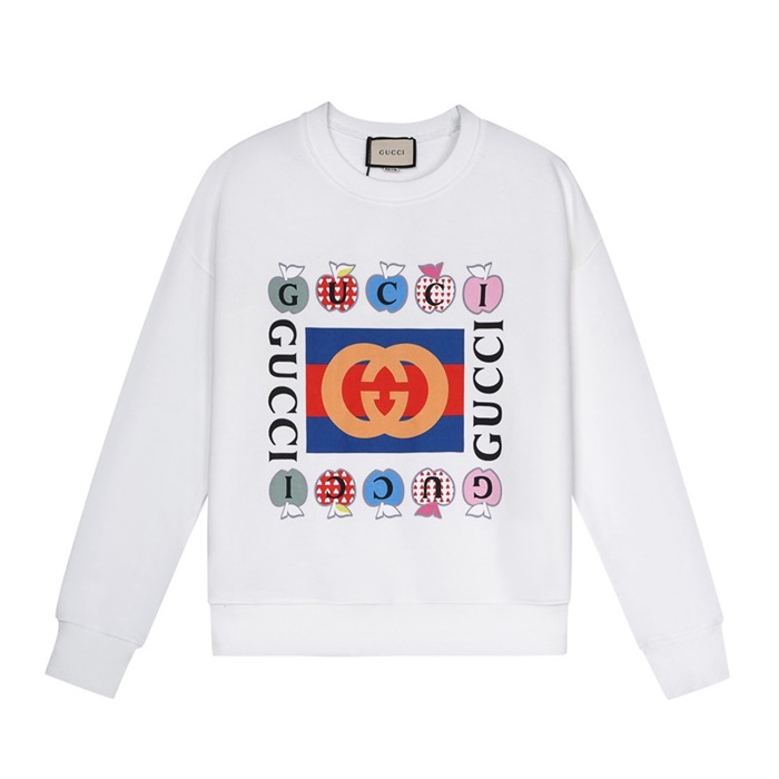 -グッチユニセックスコットンクルーネック長袖Tシャツc03969ホワイト