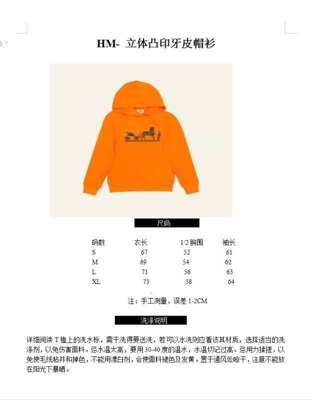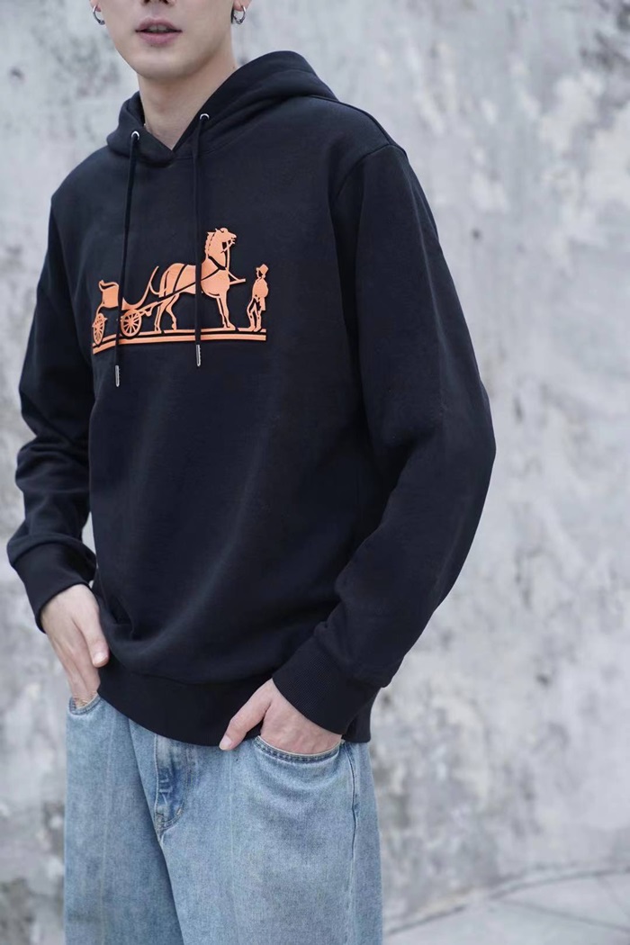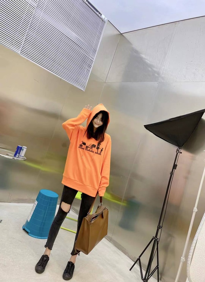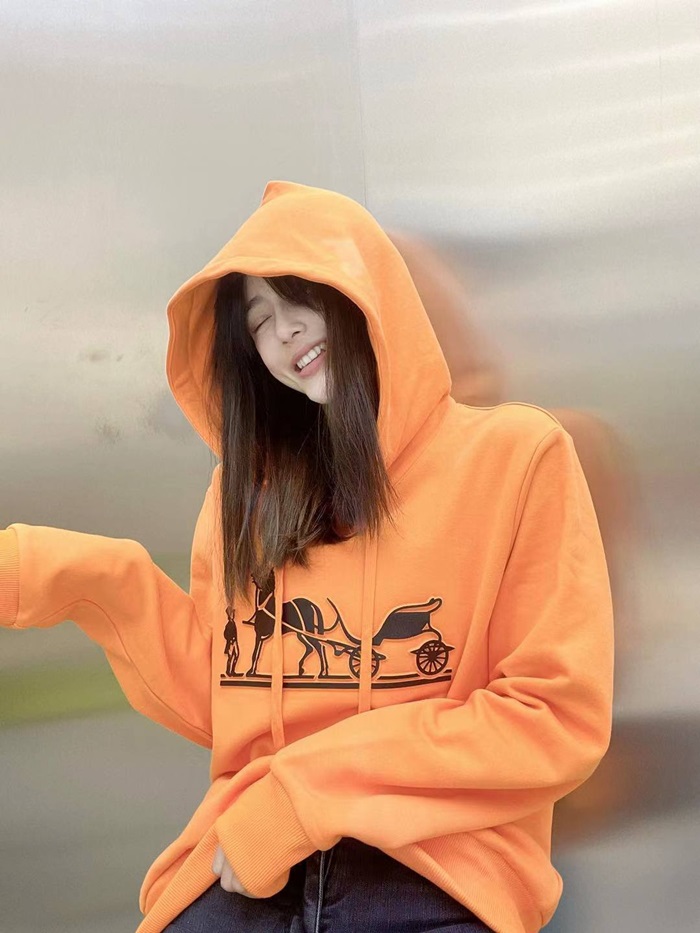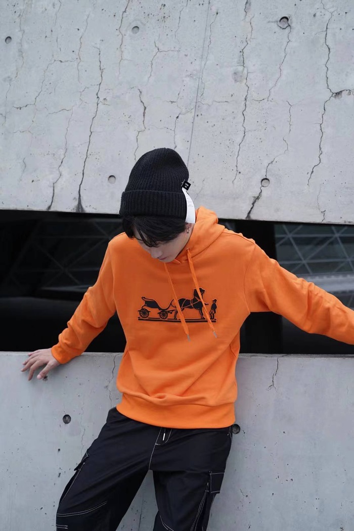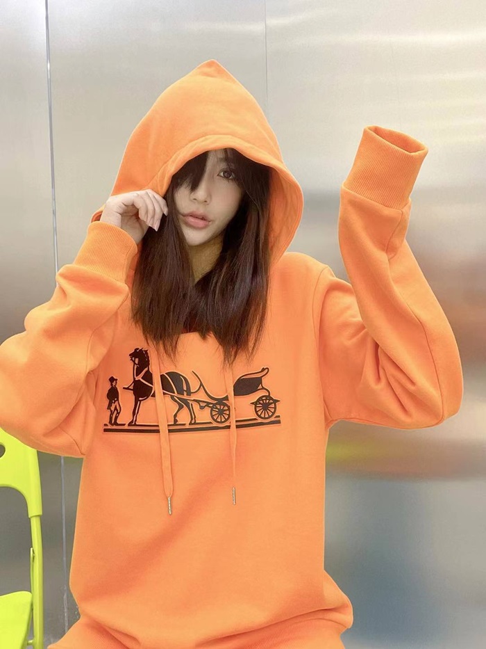 エルメスユニセックスカジュアルコットンフーディr0682オレンジ