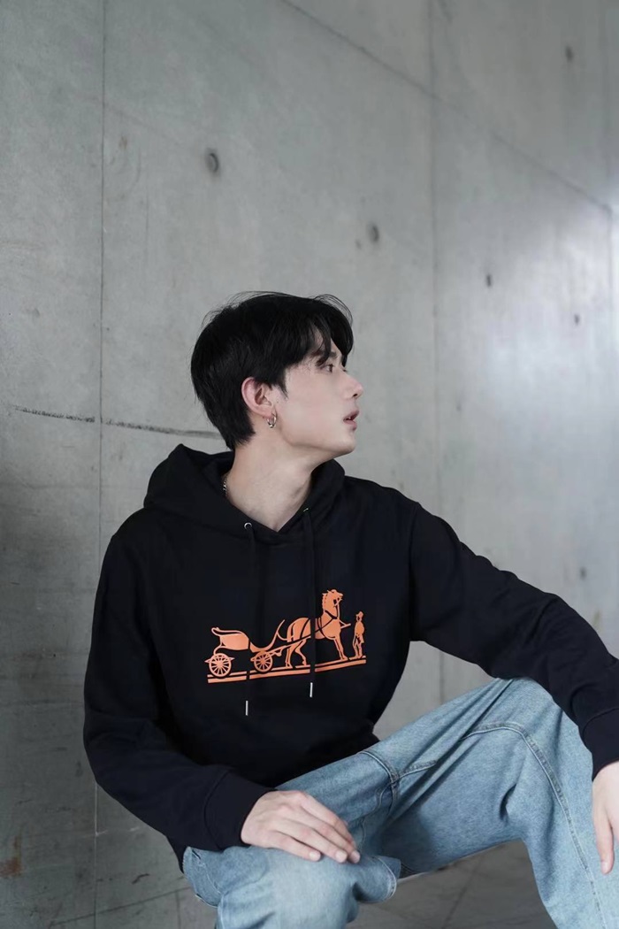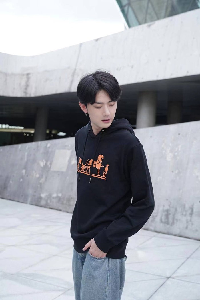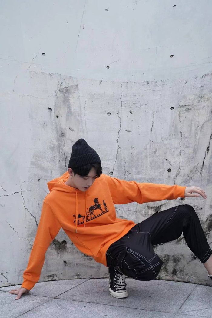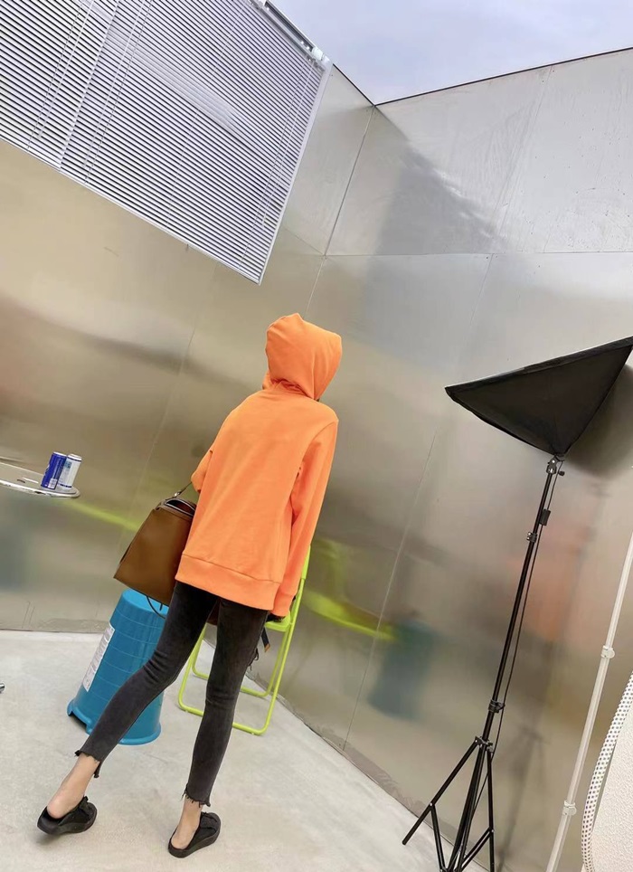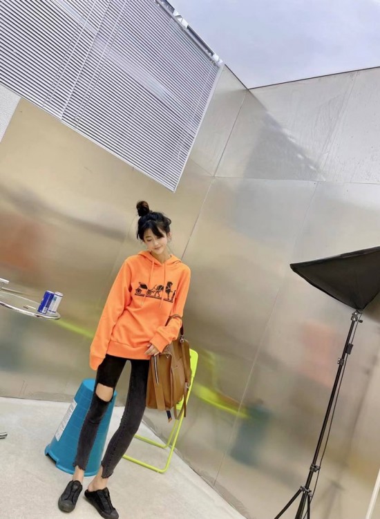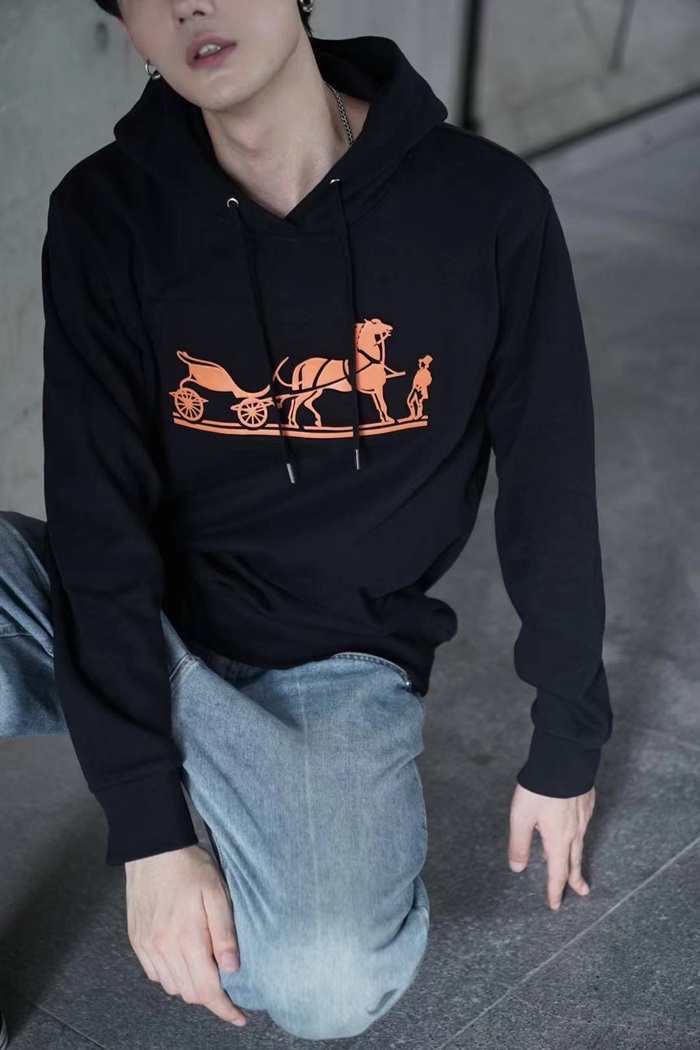エルメスユニセックスカジュアルコットンフーディr0682オレンジ