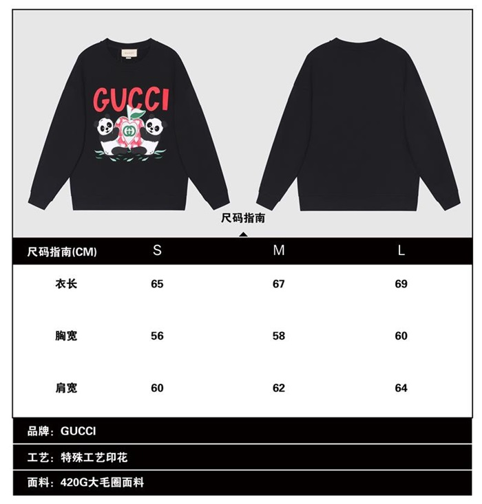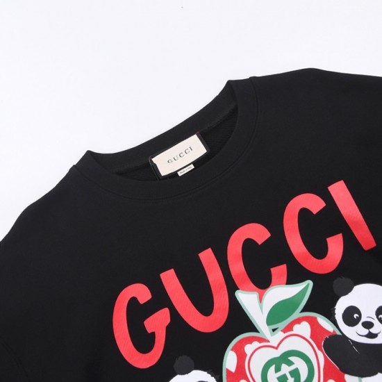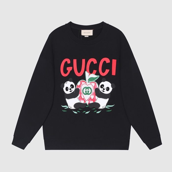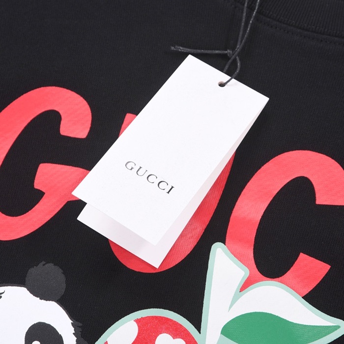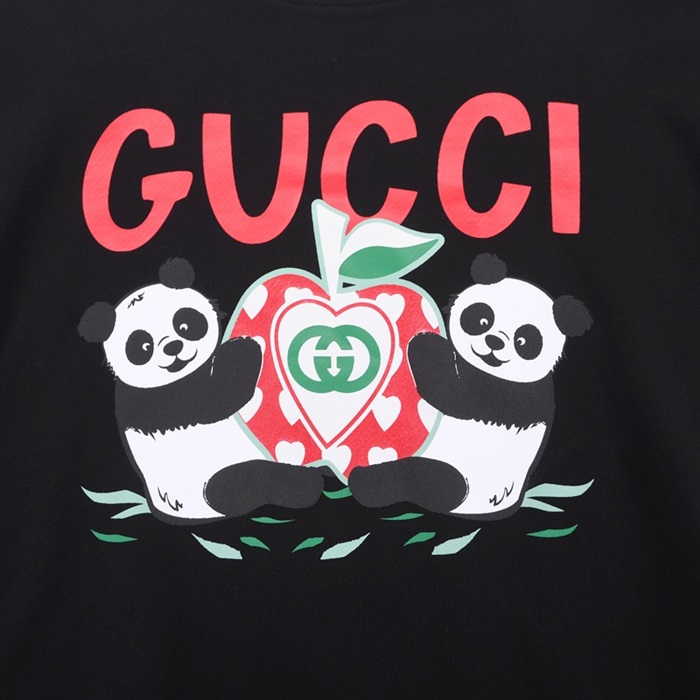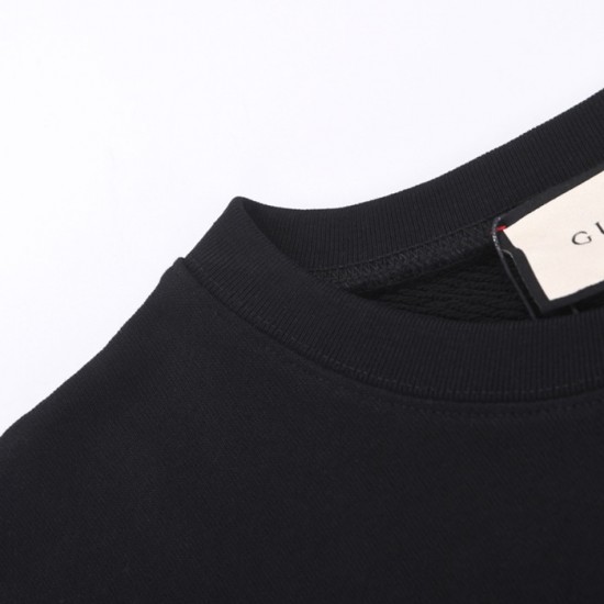-グッチユニセックスコットンクルーネック長袖Tシャツc03975ブラック