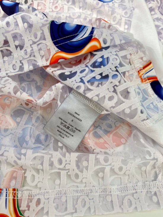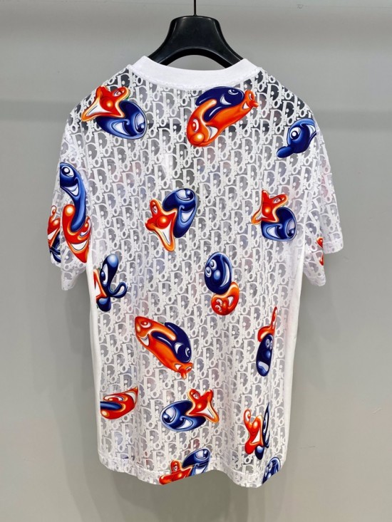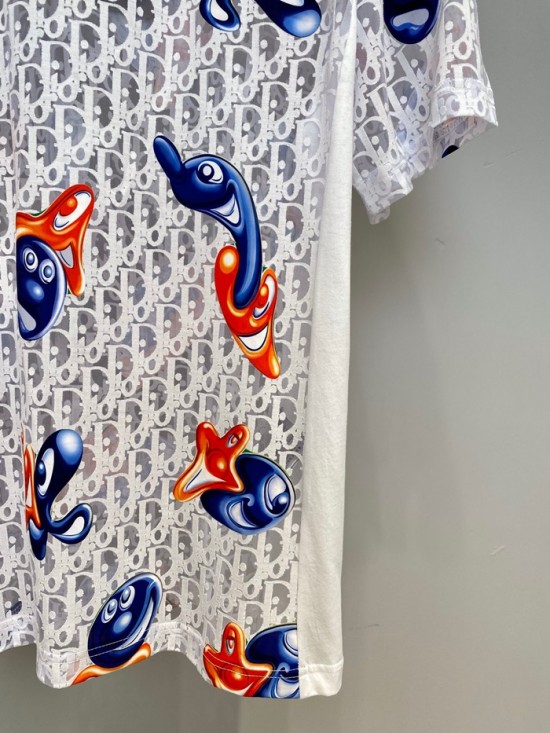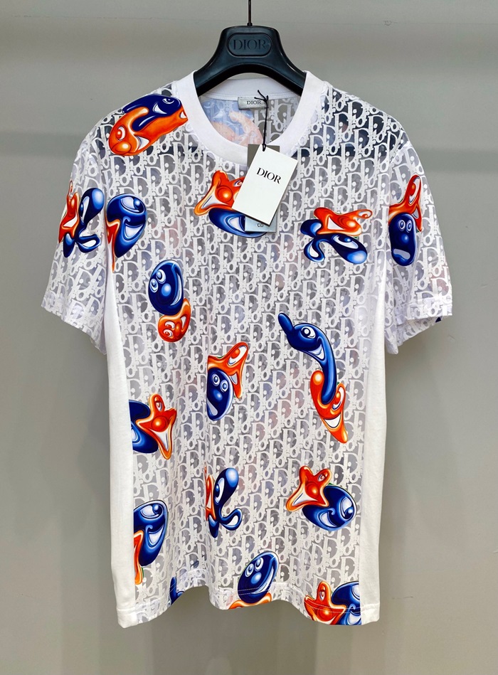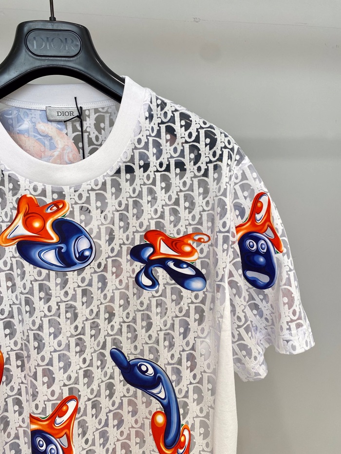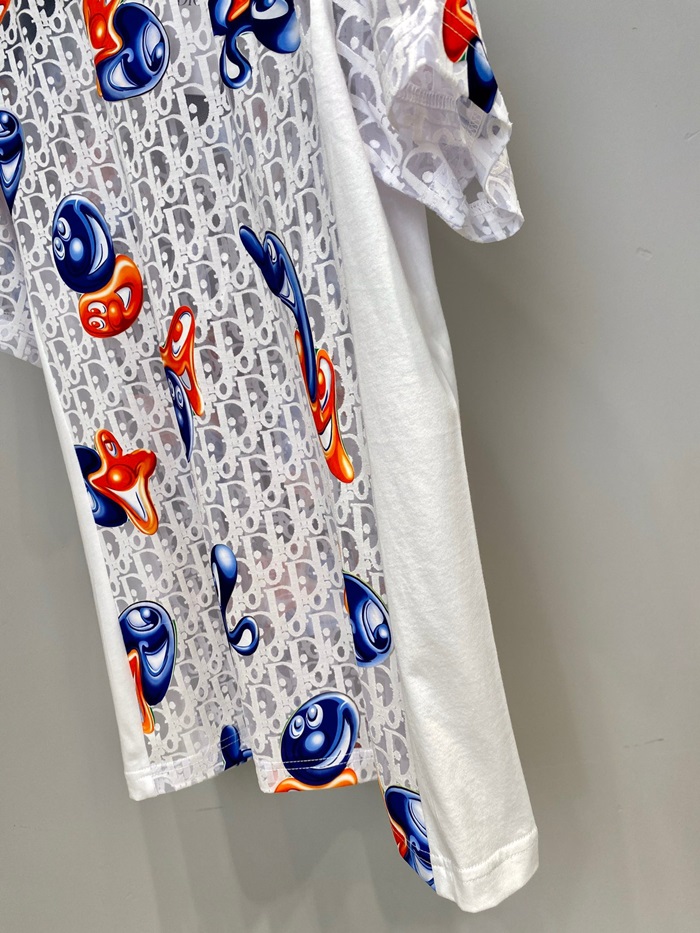 -ディオールユニセックスカジュアルクルーネック半袖Tシャツo01395ホワイト