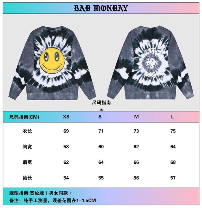 バッドマンデーユニセックスオーバーサイズコットンスウェットシャツd0018ブラック