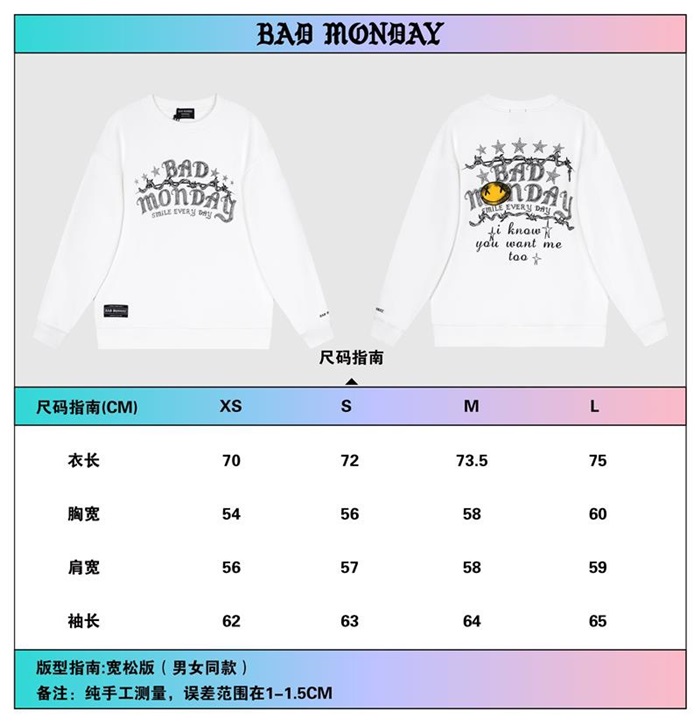 バッドマンデーユニセックスオーバーサイズコットンスウェットシャツd0023ホワイト
