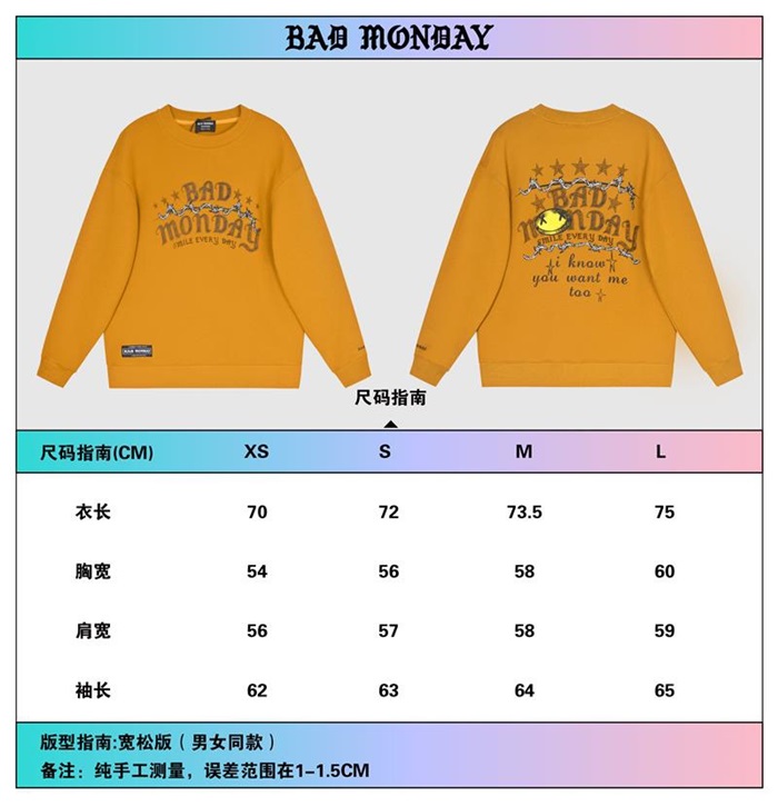 バッドマンデーユニセックスオーバーサイズコットンスウェットシャツd0024オレンジ