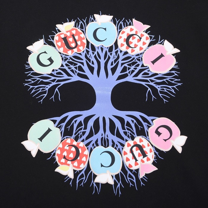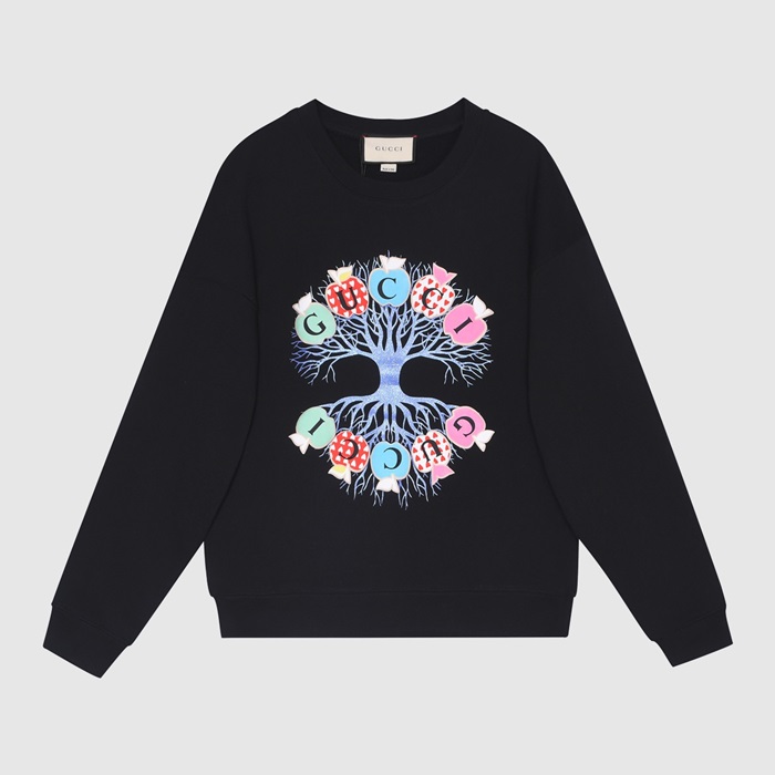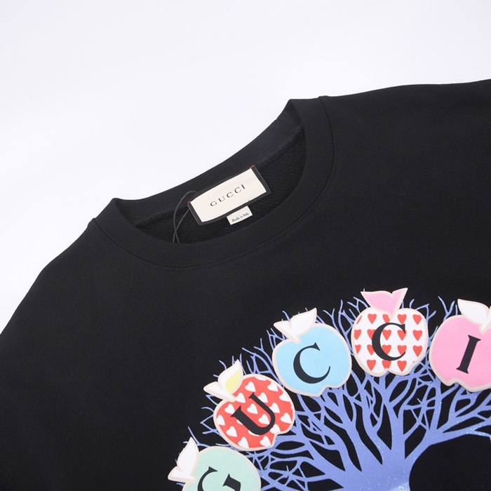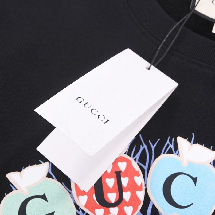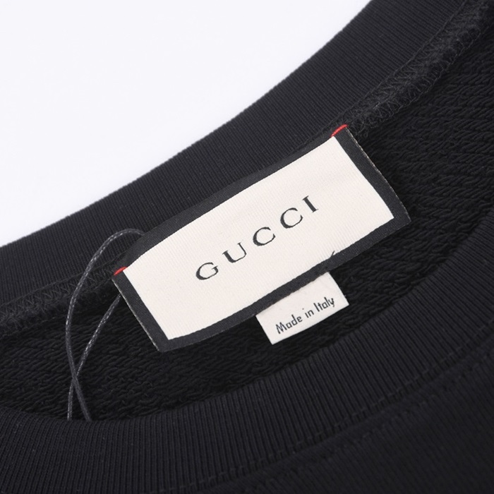 -グッチユニセックスコットンクルーネック長袖Tシャツc03987ブラック