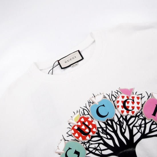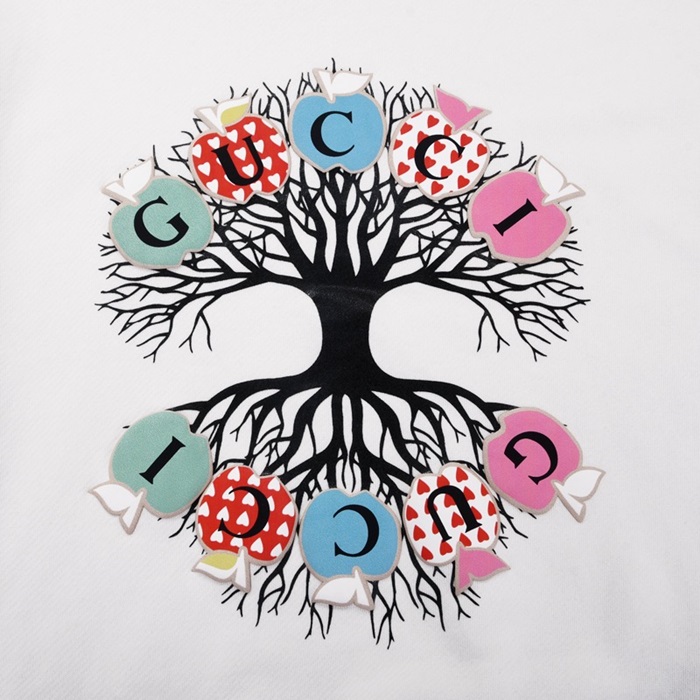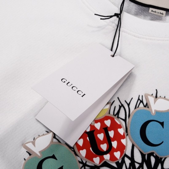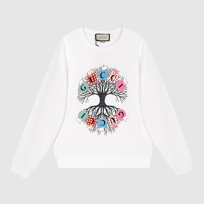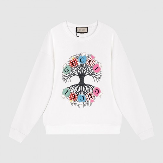 -グッチユニセックスコットンクルーネック長袖Tシャツc03989ホワイト