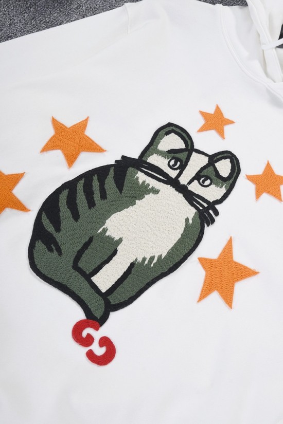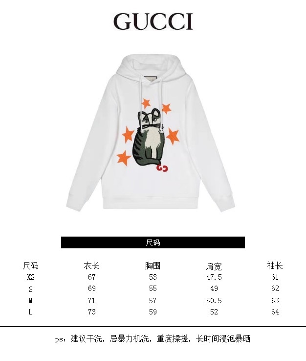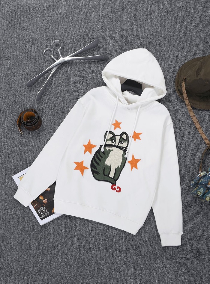 グッチユニセックスカジュアルオーバーサイズコットンフーディc04007ホワイト