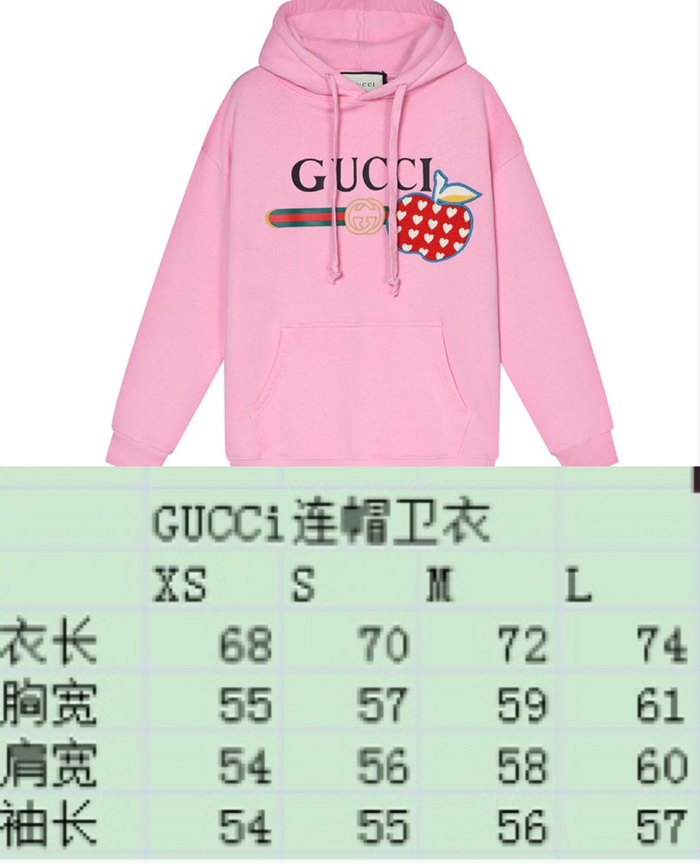 グッチユニセックスカジュアルオーバーサイズコットンフーディc03795ピンク