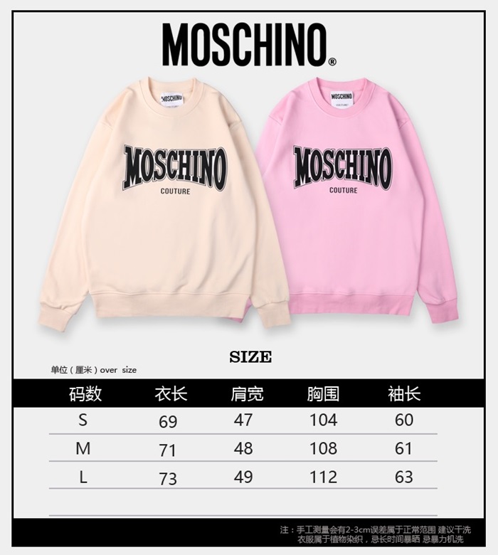 -モスキーノユニセックスクルーネックコットンスウェットシャツs0191ピンク