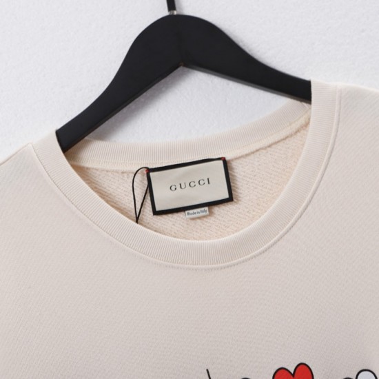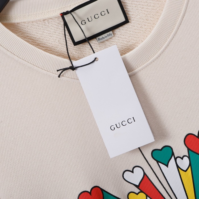 -グッチユニセックスコットンクルーネック長袖Tシャツc04017アイボリー
