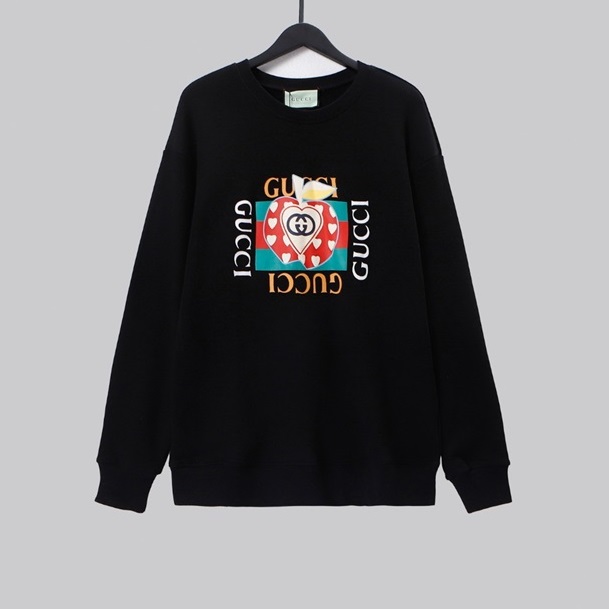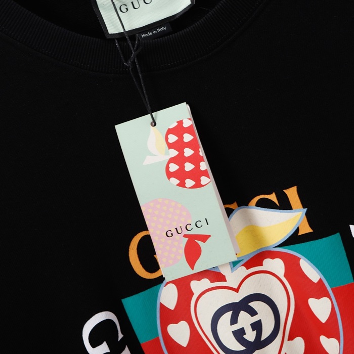 -グッチユニセックスコットンクルーネック長袖Tシャツc04020ブラック