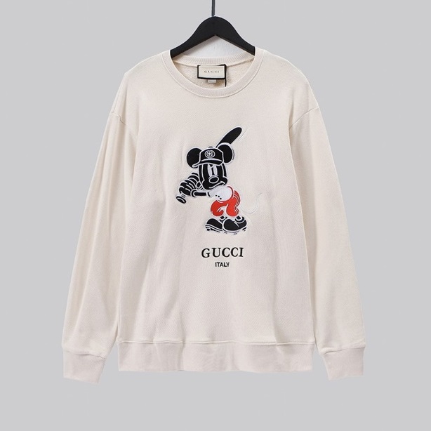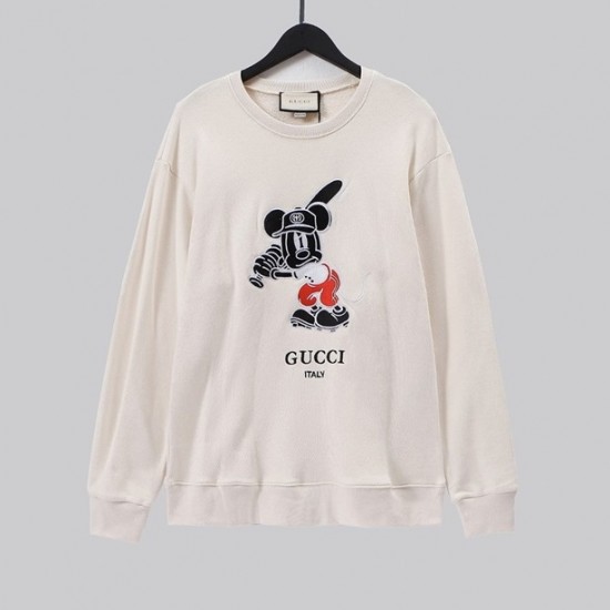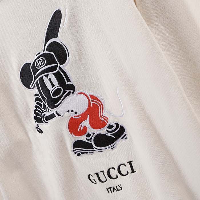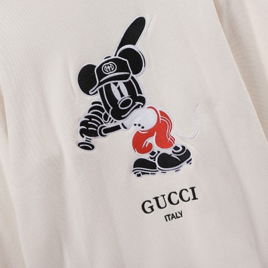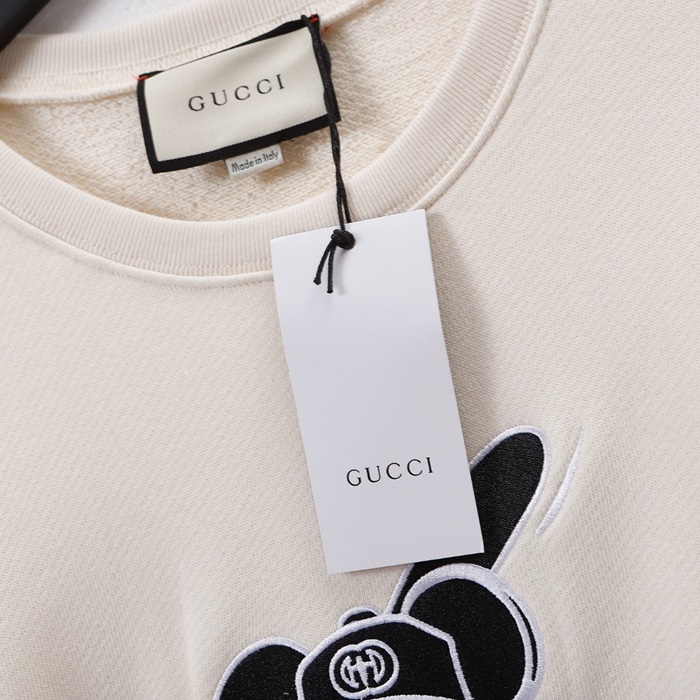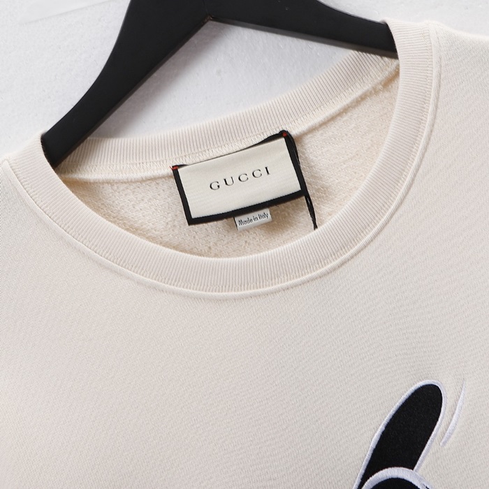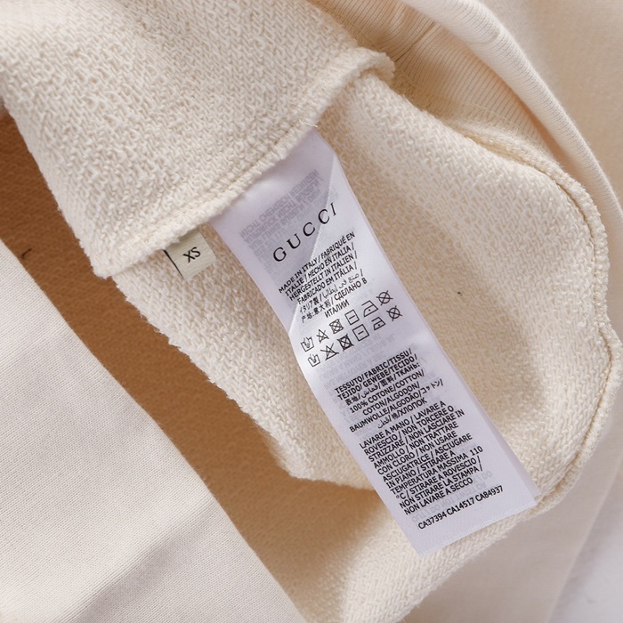 -グッチユニセックスコットンクルーネック長袖Tシャツc04025アイボリー