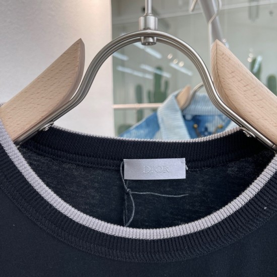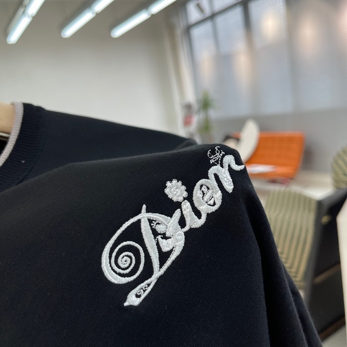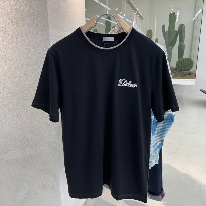 -ディオールユニセックスカジュアルクルーネック半袖Tシャツo01407ブラック