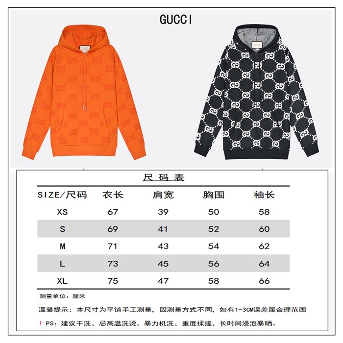 グッチユニセックスカジュアルフーディc04031オレンジ