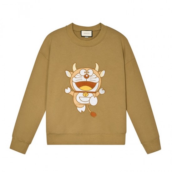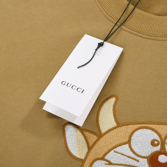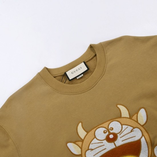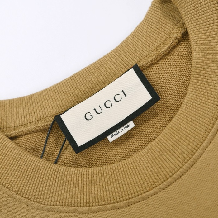 -グッチユニセックスコットンクルーネック長袖Tシャツc04036キャメル