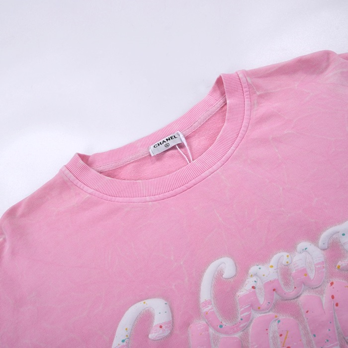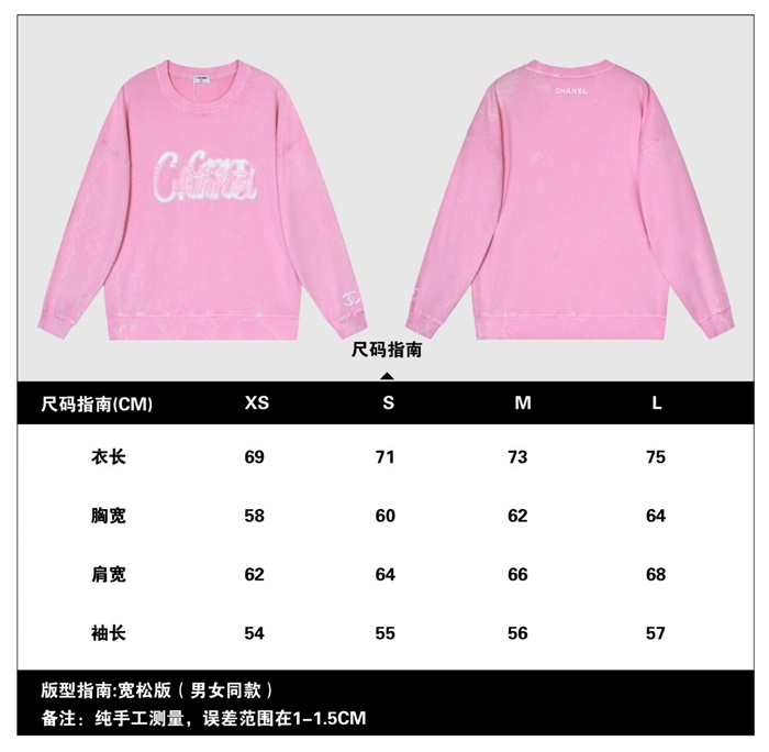 -シャネルユニセックスクルーネック長袖Tシャツl0787ピンク