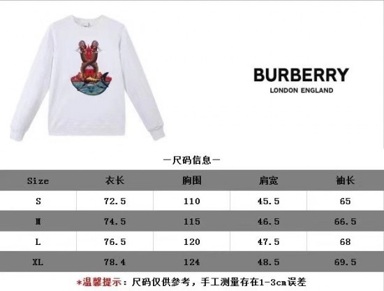 バーバリーユニセックスカジュアルコットンスウェットシャツr04101ホワイト