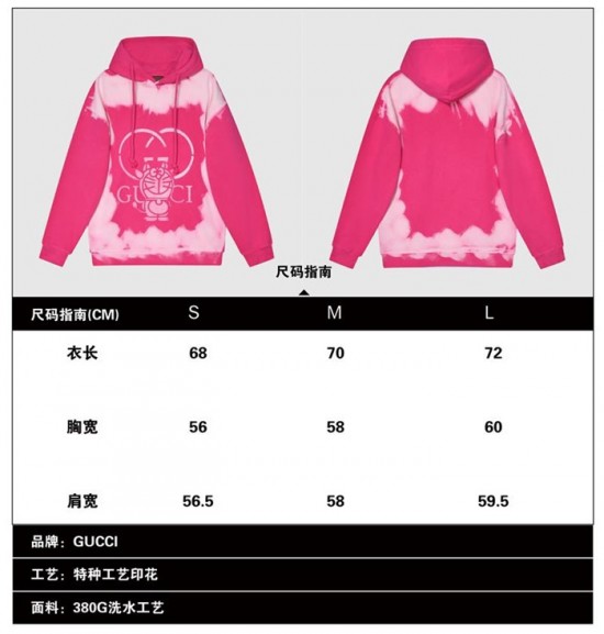 グッチユニセックスカジュアルフーディc04051ピンク