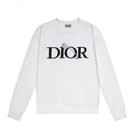 ディオールユニセックスカジュアルコットン長袖Tシャツo01420ホワイト