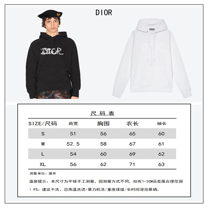 ディオールユニセックスカジュアルコットンフーディo01428ホワイト
