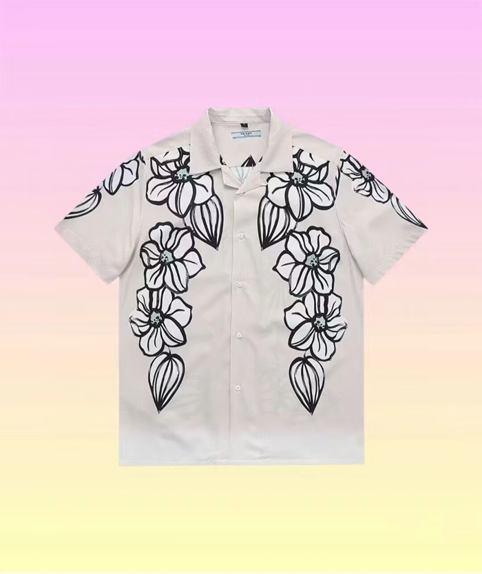 プラダメンズモダンアイボリー半袖シャツr02397