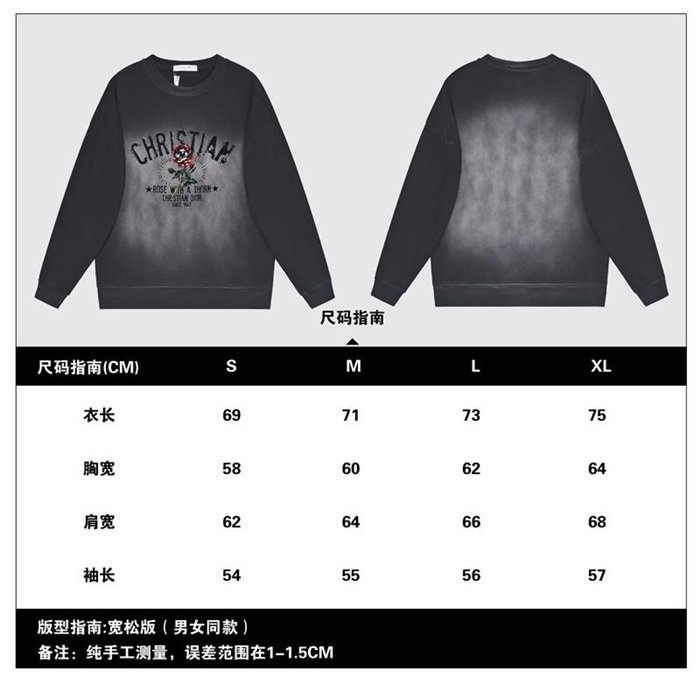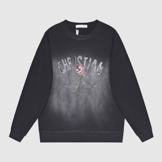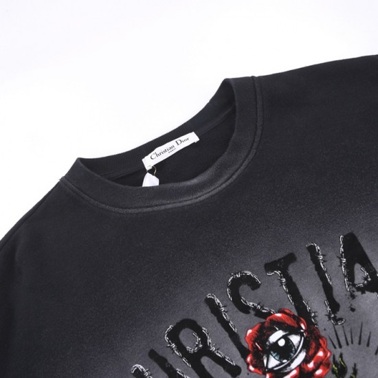 ディオールユニセックスカジュアルコットン長袖Tシャツo01436ブラック