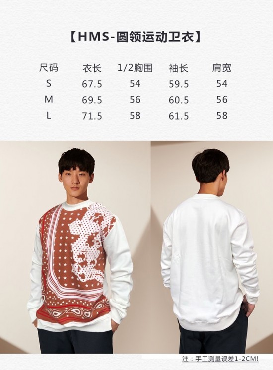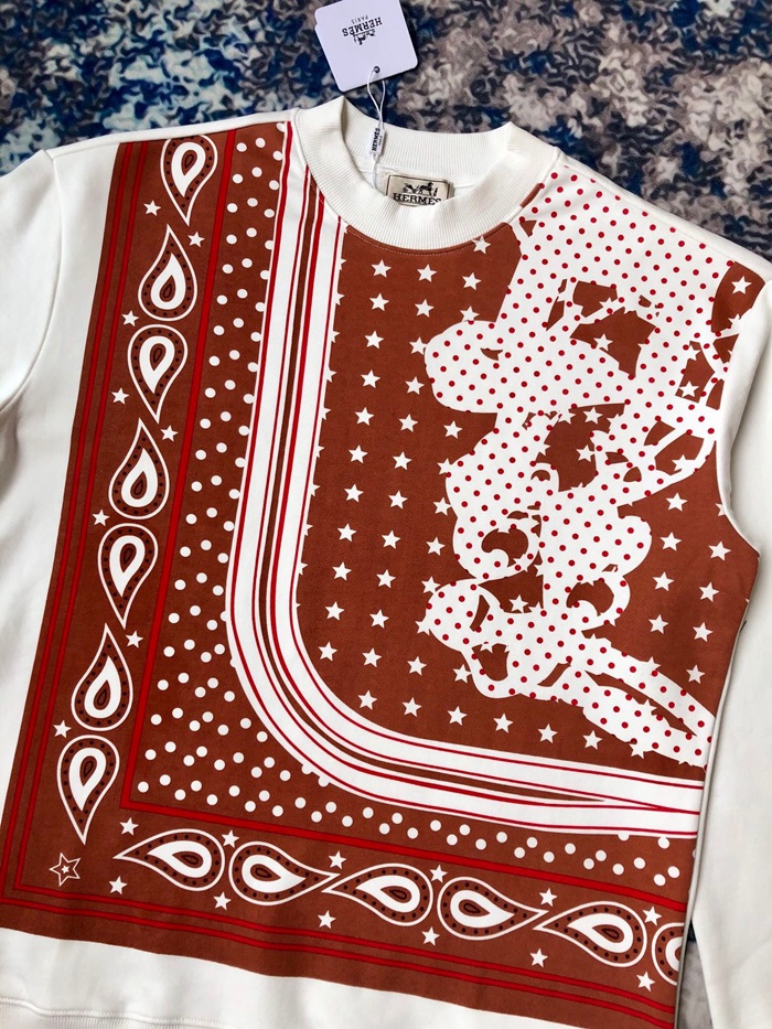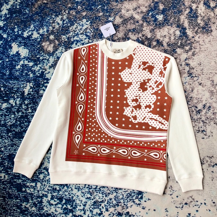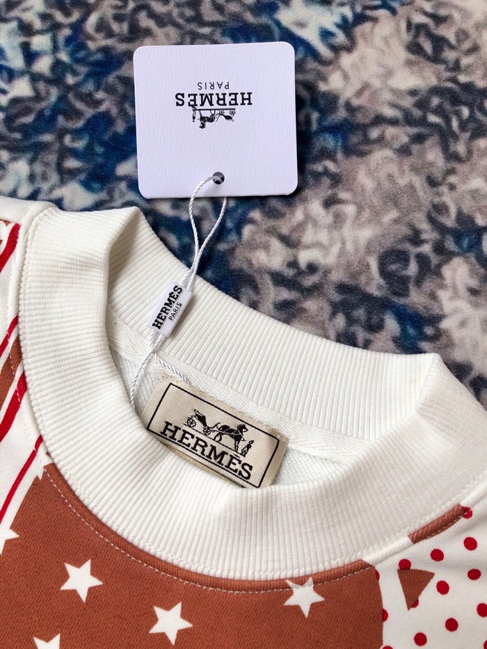-エルメスメンズクルーネックカジュアルコットン起毛長袖Tシャツr0686ホワイト
